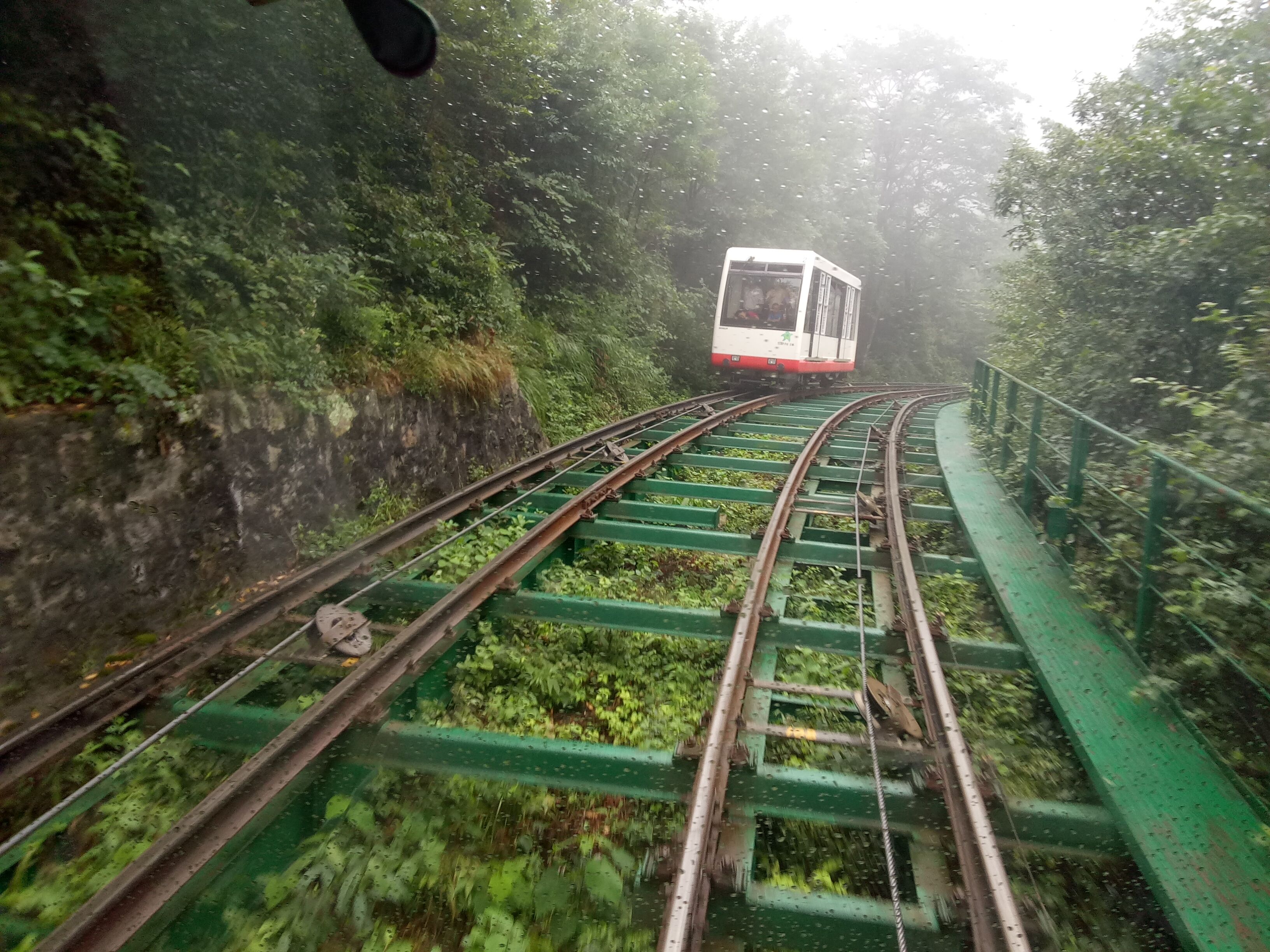 The cable car sped by. The journey was short, but the scenery along the way was eye-catching. The water gurgled, and there were piled-up rocks, presenting a typical canyon beauty. There were clouds and mists curling around on both sides, and the mountains, forests, and gullies were pleasing to the eye and the heart!