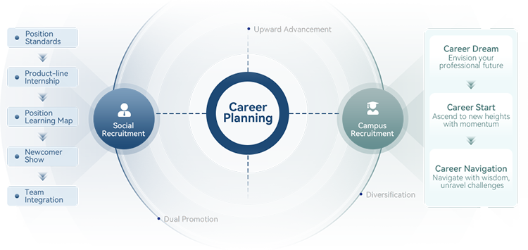 We employ a comprehensive dual-track promotion system for management and professional development, offering our employees a range of career progression paths. Based on their individual capabilities and career aspirations, our employees can opt for either track for upward advancement, becoming either experts in their field or assuming leadership roles and leading teams.