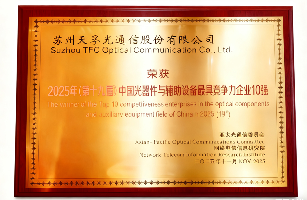 2025年11月21日,APC全球光纖光纜大會(huì)在南通國(guó)際會(huì)議中心盛大啟幕。作為大會(huì)核心環(huán)節(jié),“2025(第十九屆)全球|中國(guó)光通信最具競(jìng)爭(zhēng)力企業(yè)10強(qiáng)”頒獎(jiǎng)典禮同期舉行,天孚通信憑借扎實(shí)的綜合實(shí)力再次上榜“中國(guó)光器件與輔助設(shè)備最具競(jìng)爭(zhēng)力企業(yè)10強(qiáng)”,至此已連續(xù)八年斬獲該行業(yè)權(quán)威榮譽(yù)。