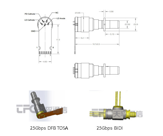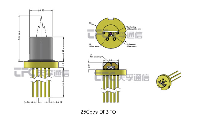 1.產(chǎn)品采用1310nm 25G 多用途量子阱(MQW)分布式反饋DFB激光器,非常適合低成本高速發(fā)射器;TO 封裝形式TO38/TO56, 傳輸距離2~10km;