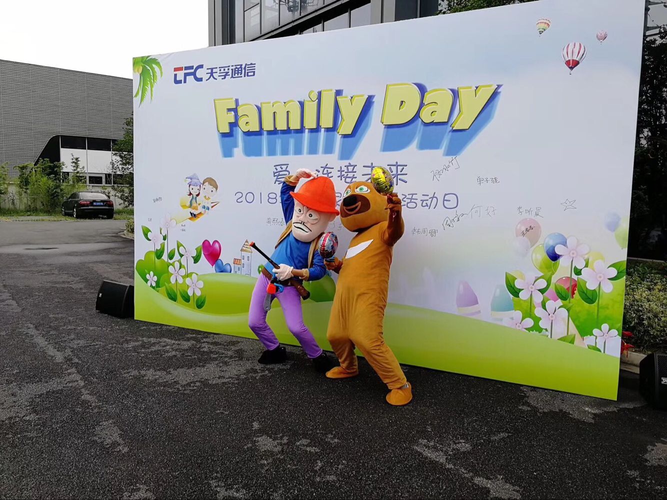 早上八點,公司門口,“光頭強”和“熊大”兩位卡通人偶熱情地迎接著前來參加活動的TFC員工及親屬,小朋友們爭先恐后地和兩位卡通人物合影。