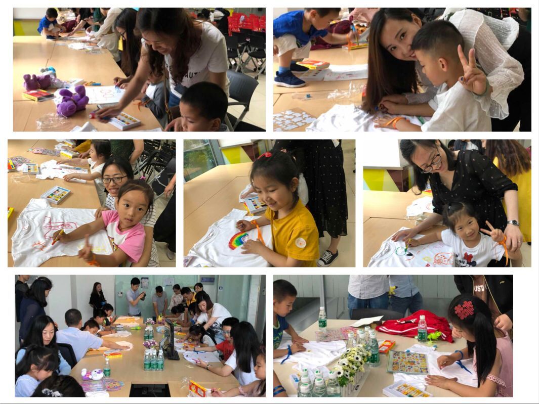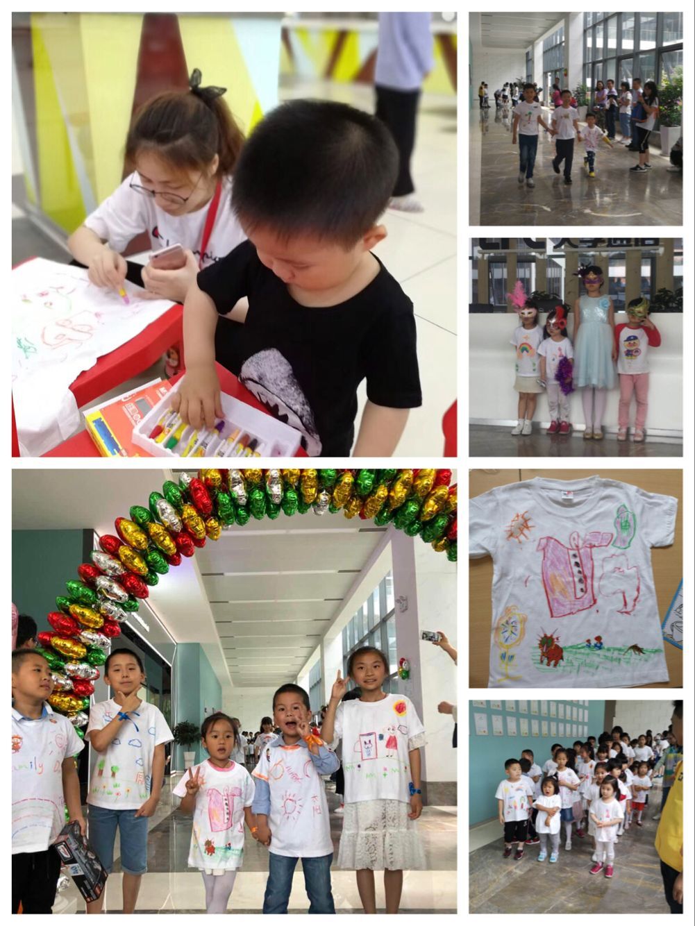 說到活動最有創意的環節,不得不提獨具特色的“T恤彩繪”活動。純白色的T恤上,孩子們可以通過自己的想象力和創造力去盡情地打扮它。有的孩子用心地畫上了自己最愛的小豬佩奇,有的孩子描繪出了陽光下一家三口散步的情景,有的孩子惟妙惟肖地臨摹桌上擺放的裝飾花,有的孩子將可愛的卡通貼紙貼在胸前,一幅幅天馬行空的創意作品就此誕生了。工作人員邀請孩子們穿上自行設計的創意T恤,進行T臺走秀表演,每一位家長看著自己孩子的個性走秀都洋溢著幸福和驕傲的微笑。